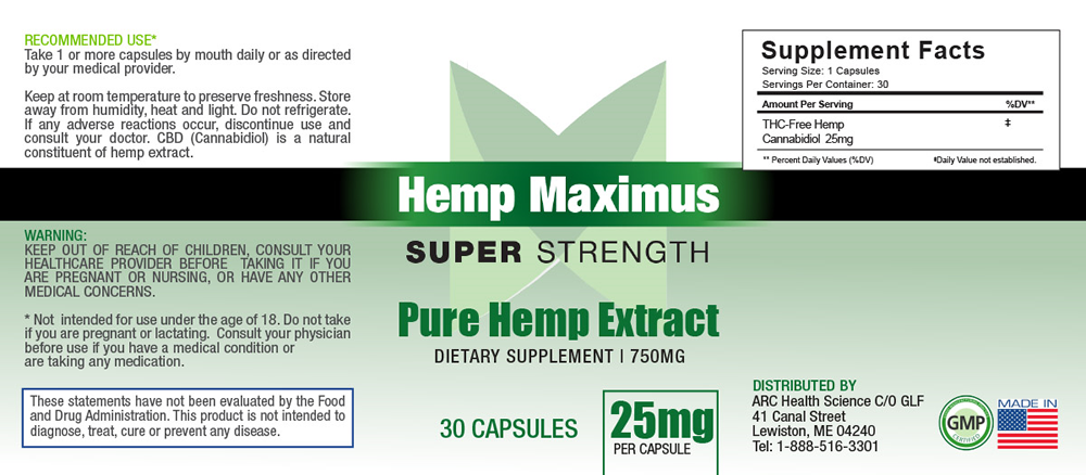 Return products to: HEMP MAXIMUS c/o GLF 41 Canal Street Lewiston, ME 04240 USA